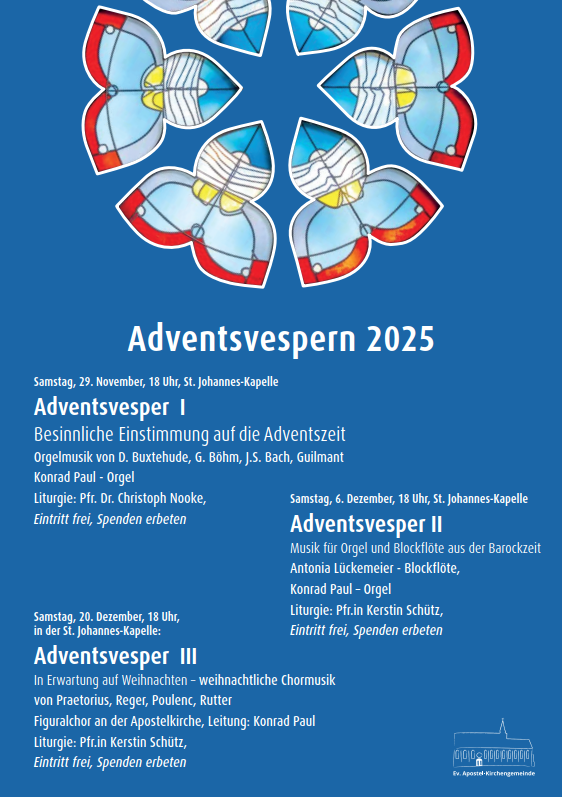 Advent in Apostel. Alle Gottesdienste und Veranstaltungen finden Sie hier.