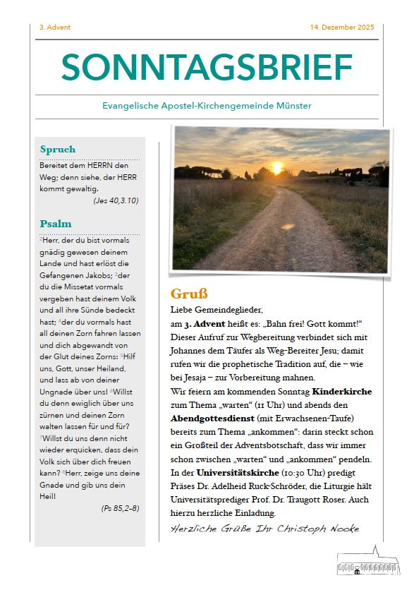 Sonntagsbrief vom 14. Dezember Sie finden den Sonntagsbrief hier.