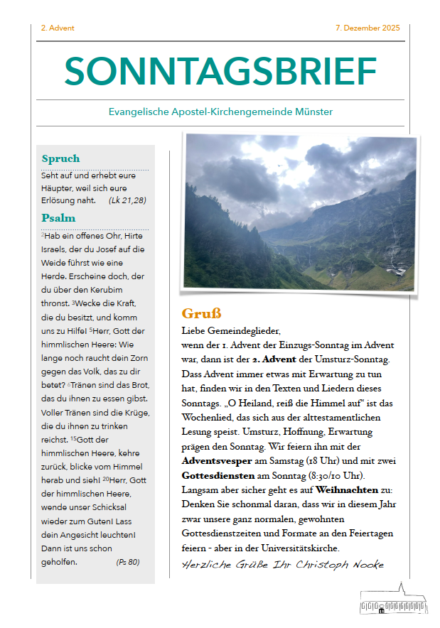 Sonntagsbrief. Sie finden den aktuellen Sonntagsbrief hier.