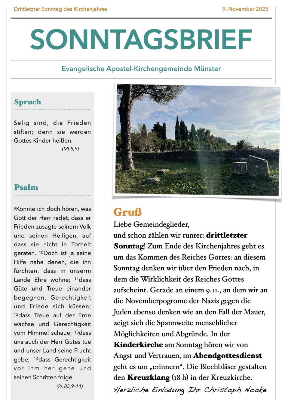 Sonntagsbrief vom 9. November. Sie finden den Sonntagsbrief hier.