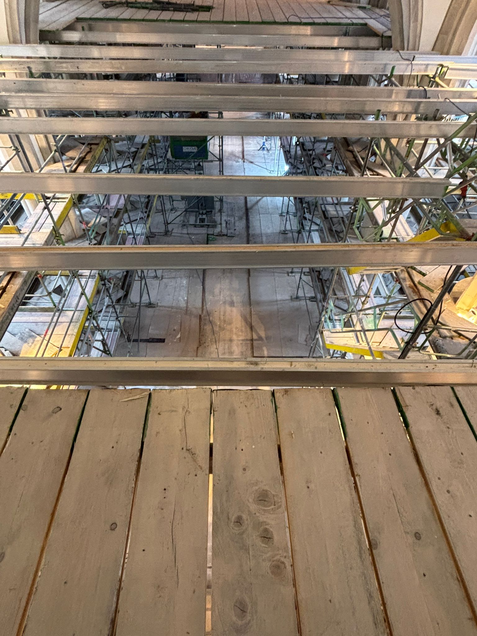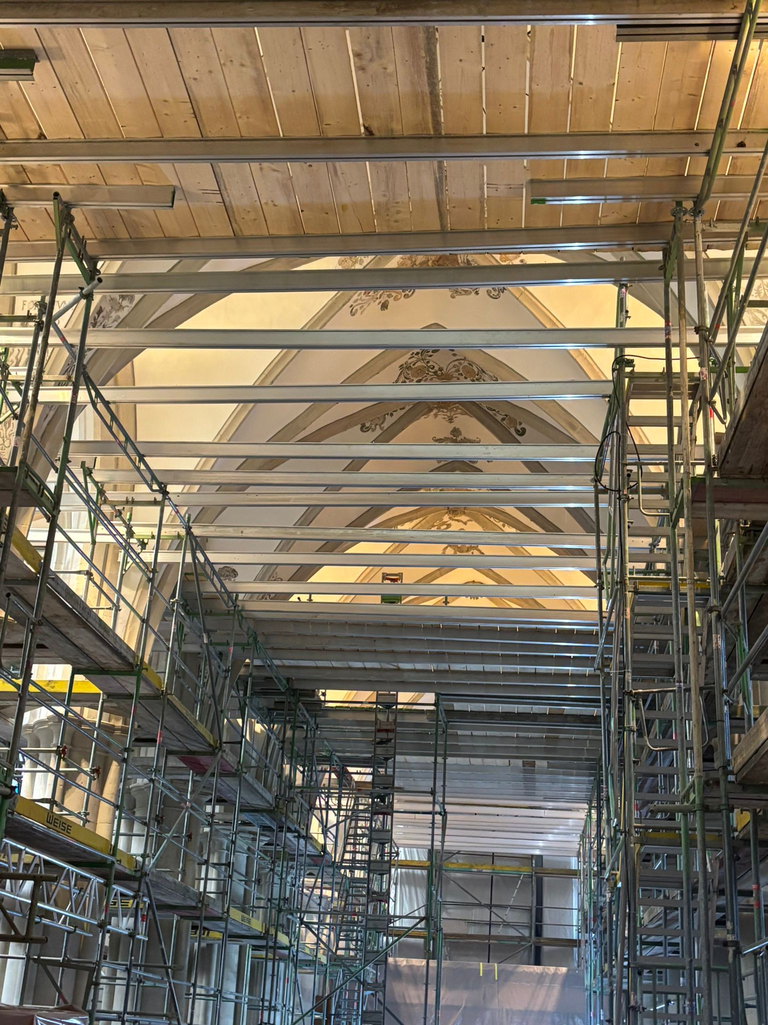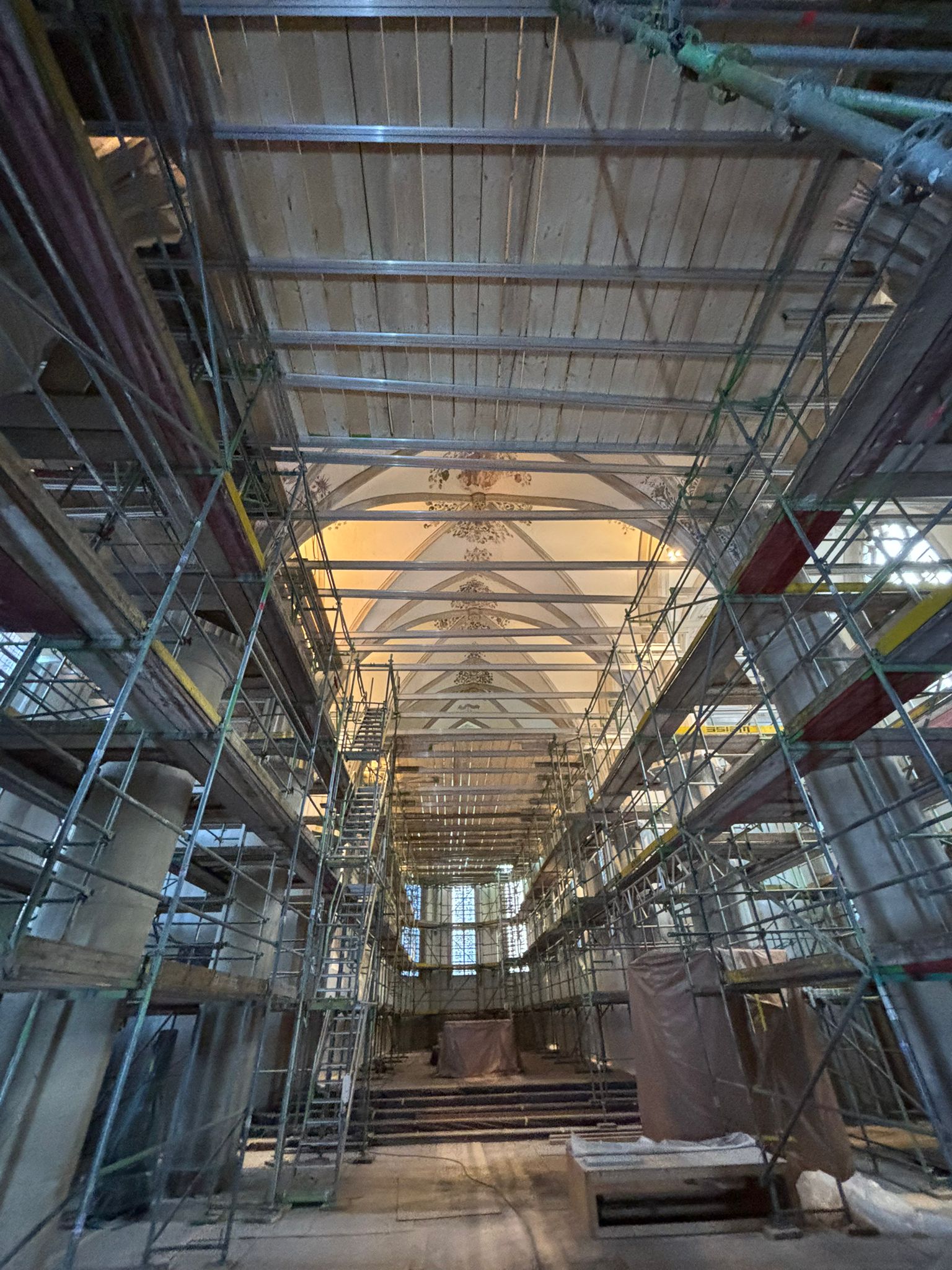 Der Gerüstaufbau schreitet voran, die Orgel ist gut und sicher verpackt.